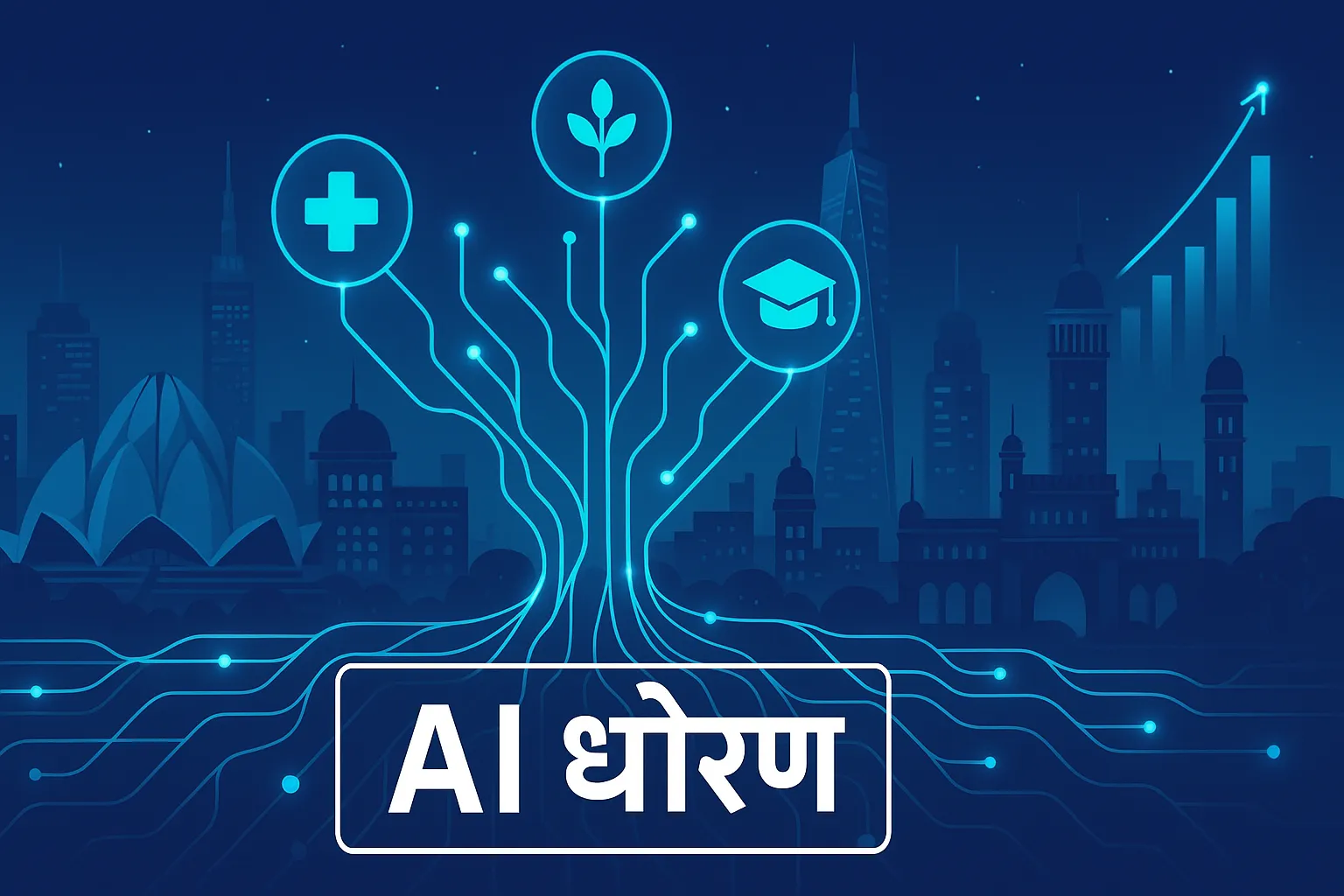 - धोरणामध्ये आरोग्यसेवा, कृषी, शिक्षण आणि स्मार्ट शहरे यांसारख्या प्रमुख क्षेत्रांमध्ये AI चा वापर वाढवण्याची शिफारस केली आहे.